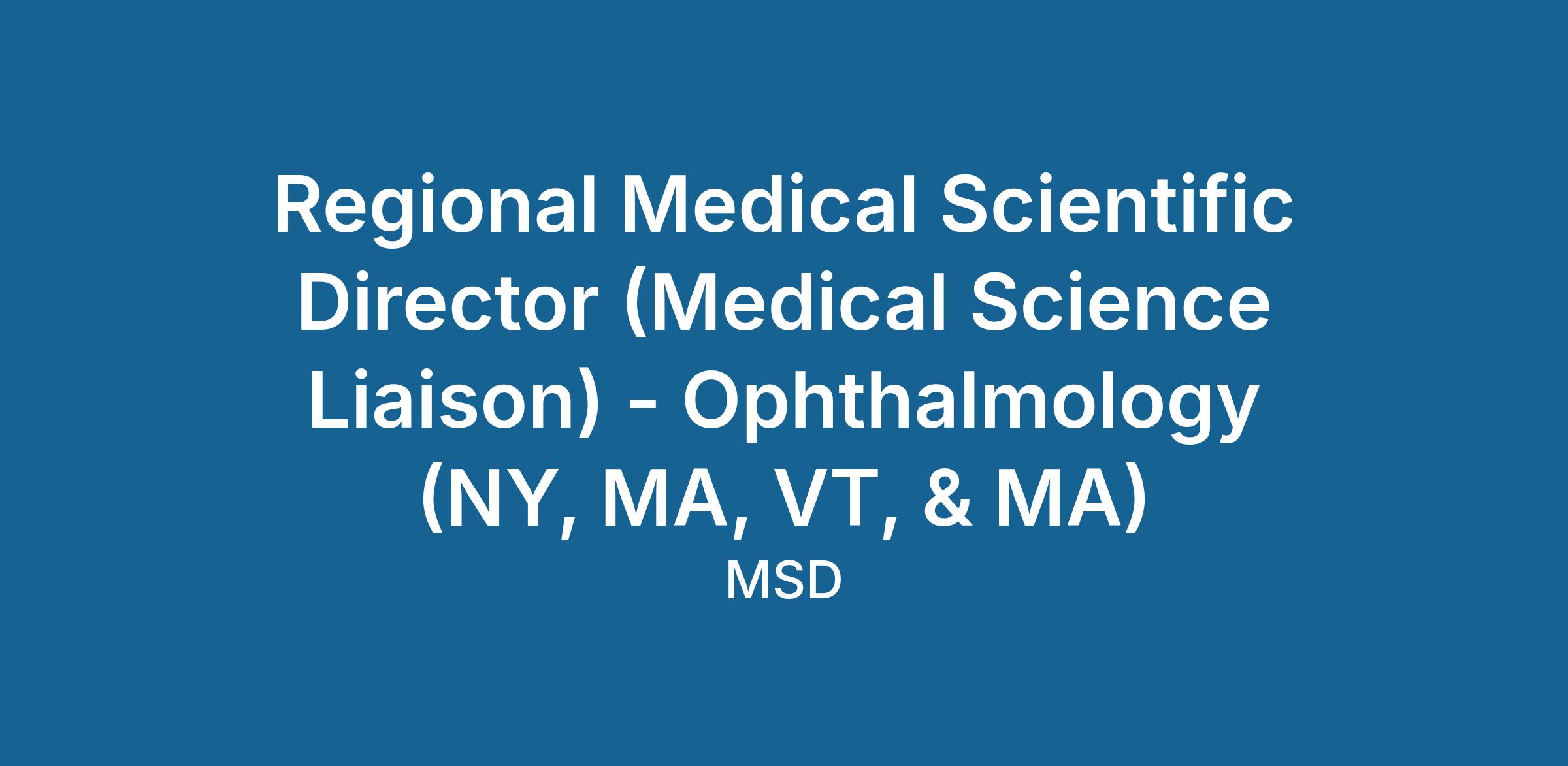 The Regional Medical Scientific Director (RMSD) is a credentialed (i.e., PhD, PharmD, OD, DO, or MD) therapeutic and disease expert who engages in bidirectional exchange of scientific or medical information with Scientific Leaders (SLs). The role provides balanced, factual, scientific information about non-product areas of interest to the Company and replies to scientific questions from SLs, including questions about Company products. The work of an RMSD is aligned to: Scientific Exchange, Research, Scientific Congress Support, and Scientific Insights.