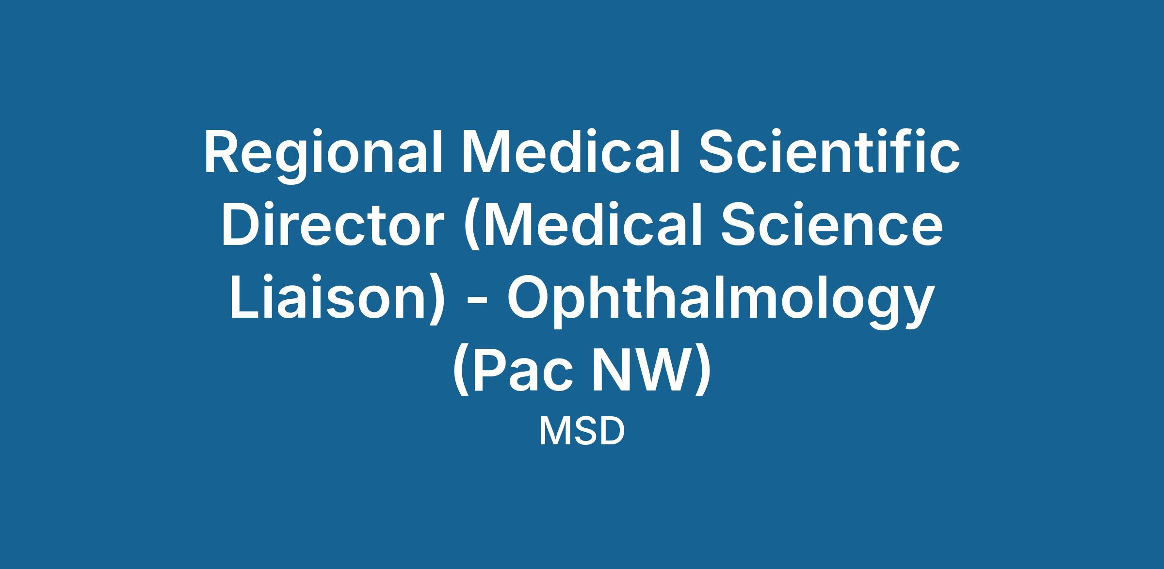 The Regional Medical Scientific Director is a credentialed (i.e., PhD, PharmD, OD, DO, or MD) therapeutic and disease expert who engages in bidirectional exchange of scientific or medical information with Scientific Leaders (SLs). The role provides balanced, factual, scientific information about non-product areas of interest to the Company and replies to scientific questions from SLs, including questions about Company products. The work of an Regional Medical Scientific Director is aligned to: Scientific Exchange, Research, Scientific Congress Support, and Scientific Insights.
