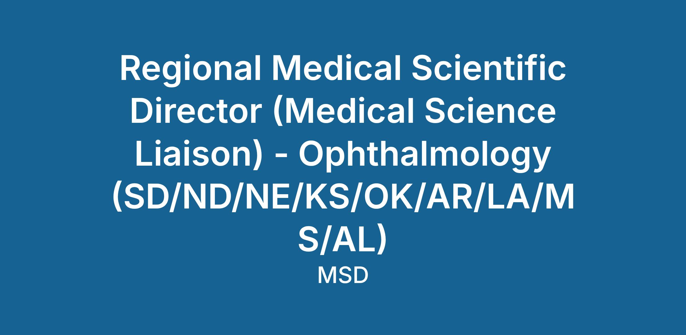The Regional Medical Scientific Director (RMSD) is a credentialed (i.e., PhD, PharmD, OD, DO, or MD) therapeutic and disease expert who engages in bidirectional exchange of scientific or medical information with Scientific Leaders (SLs). The role provides balanced, factual, scientific information about non-product areas of interest to the Company and replies to scientific questions from SLs, including questions about Company products. The work of an RMSD is aligned to: Scientific Exchange, Research, Scientific Congress Support, and Scientific Insights.