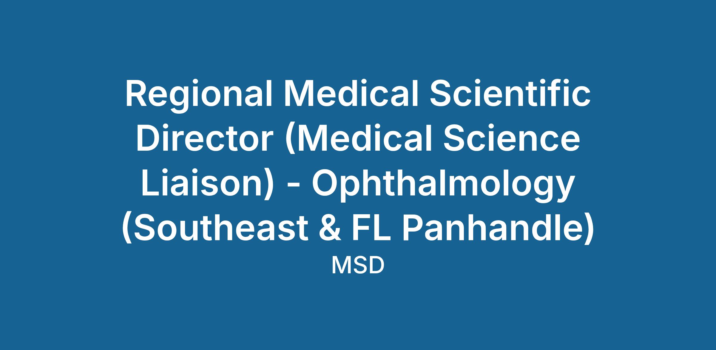 The Regional Medical Scientific Director (RMSD) is a credentialed (i.e., PhD, PharmD, OD, DO, or MD) therapeutic and disease expert who engages in bidirectional exchange of scientific or medical information with Scientific Leaders (SLs). The role provides balanced, factual, scientific information about non-product areas of interest to the Company and replies to scientific questions from SLs, including questions about Company products. The work of an RMSD is aligned to: Scientific Exchange, Research, Scientific Congress Support, and Scientific Insights.