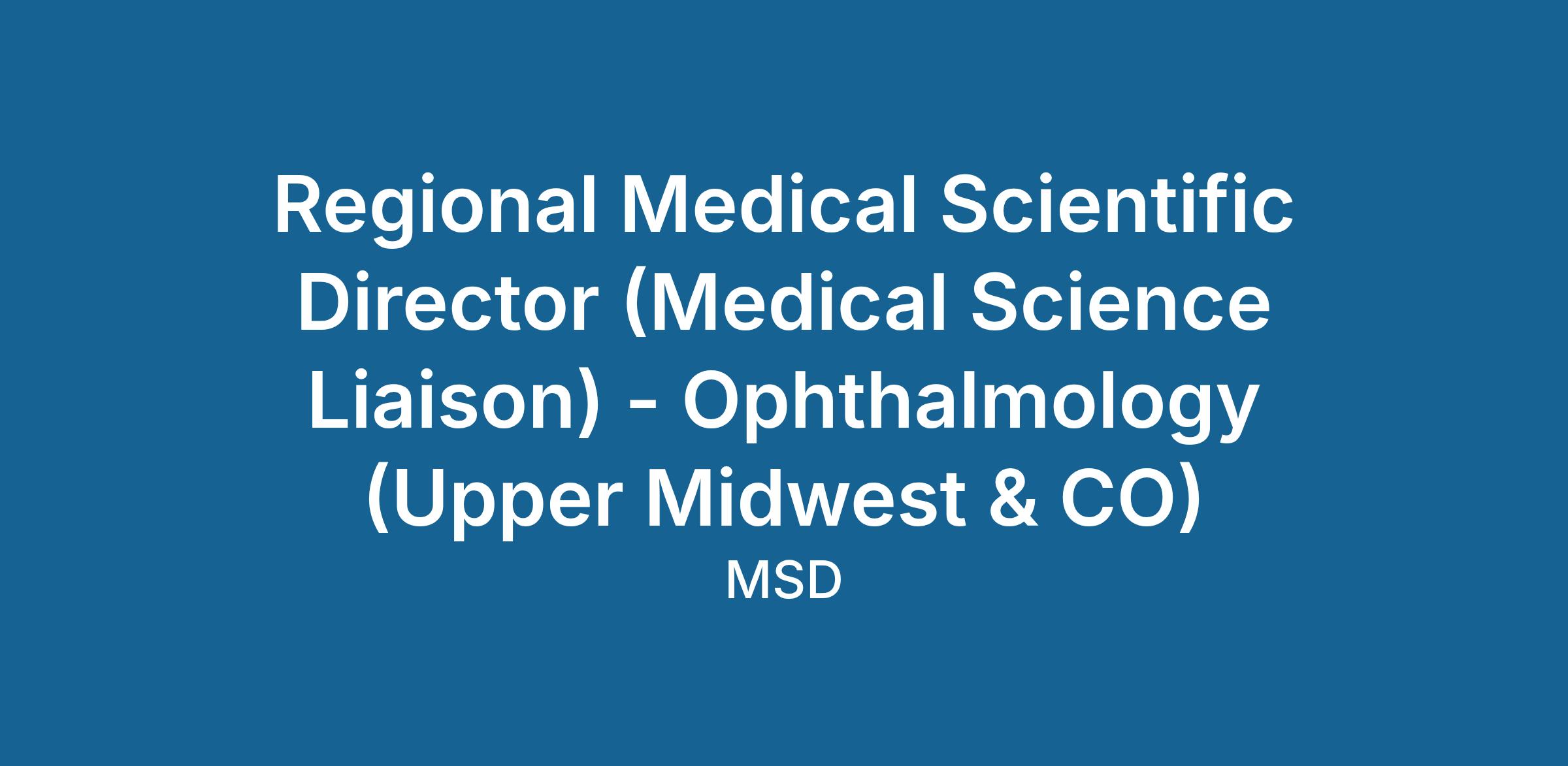 The Regional Medical Scientific Director (RMSD) is a credentialed (i.e., PhD, PharmD, OD, DO, or MD) therapeutic and disease expert who engages in bidirectional exchange of scientific or medical information with Scientific Leaders (SLs). The role provides balanced, factual, scientific information about non-product areas of interest to the Company and replies to scientific questions from SLs, including questions about Company products. The work of an RMSD is aligned to: Scientific Exchange, Research, Scientific Congress Support, and Scientific Insights.