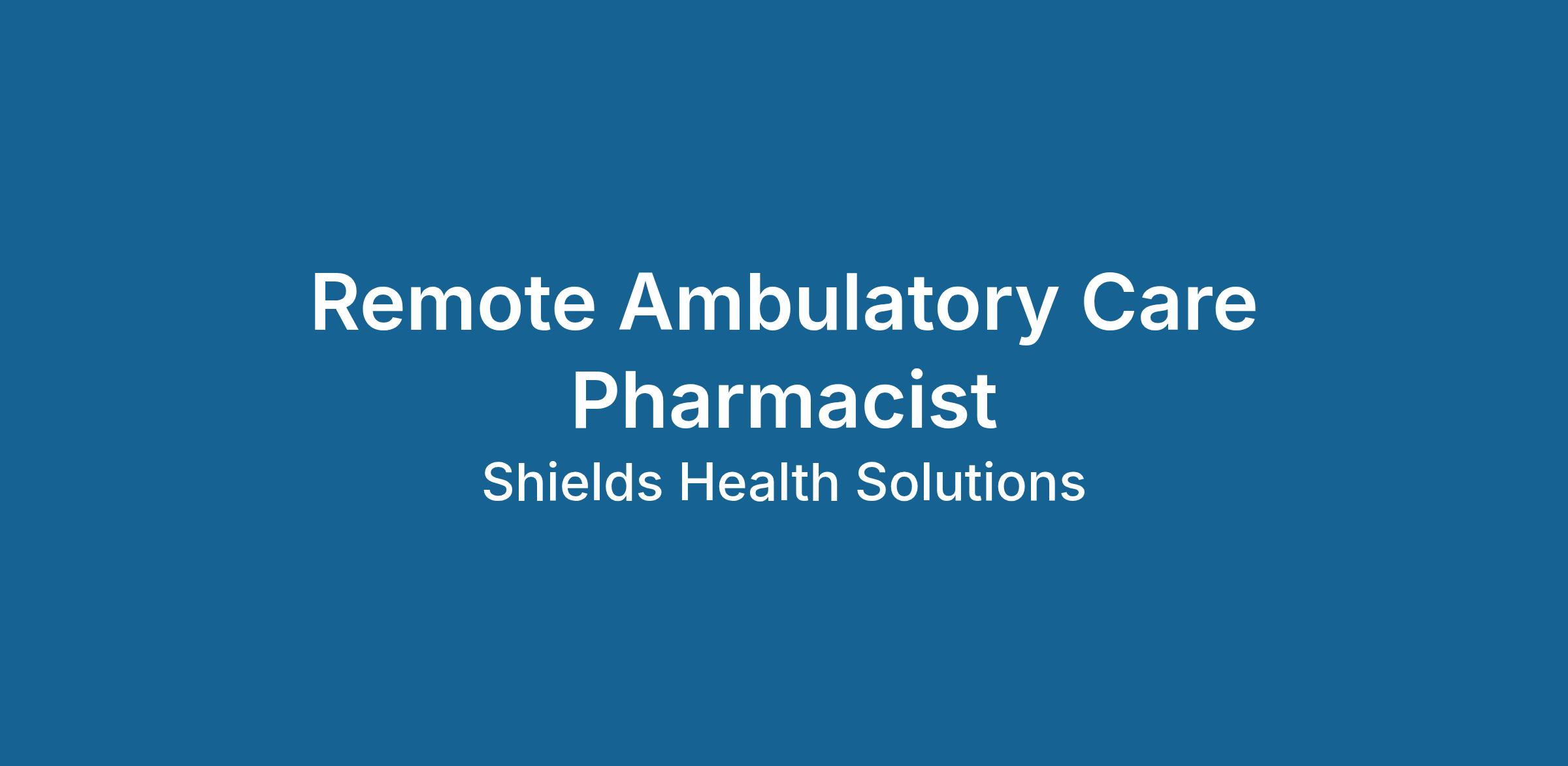 By providing your mobile number, you agree to receive text messages from Shields Health Solutions related to job opportunities, interview scheduling, and recruiting updates. Message and data rates may apply. You may opt out at any time by replying 'STOP.' Consent is not a condition of employment.