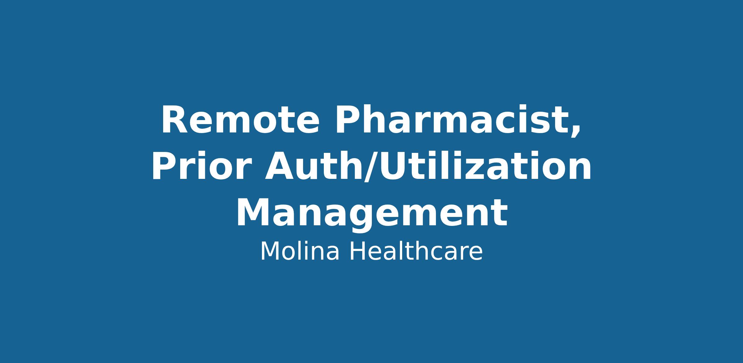 Molina Healthcare is hiring for a Pharmacist in our UM/Prior Authorization department. Candidates must be licensed to practice in the state of Florida or be able to obtain Florida licensure within 90 days of starting. This position is remote and can be worked from a variety of locations within the US.