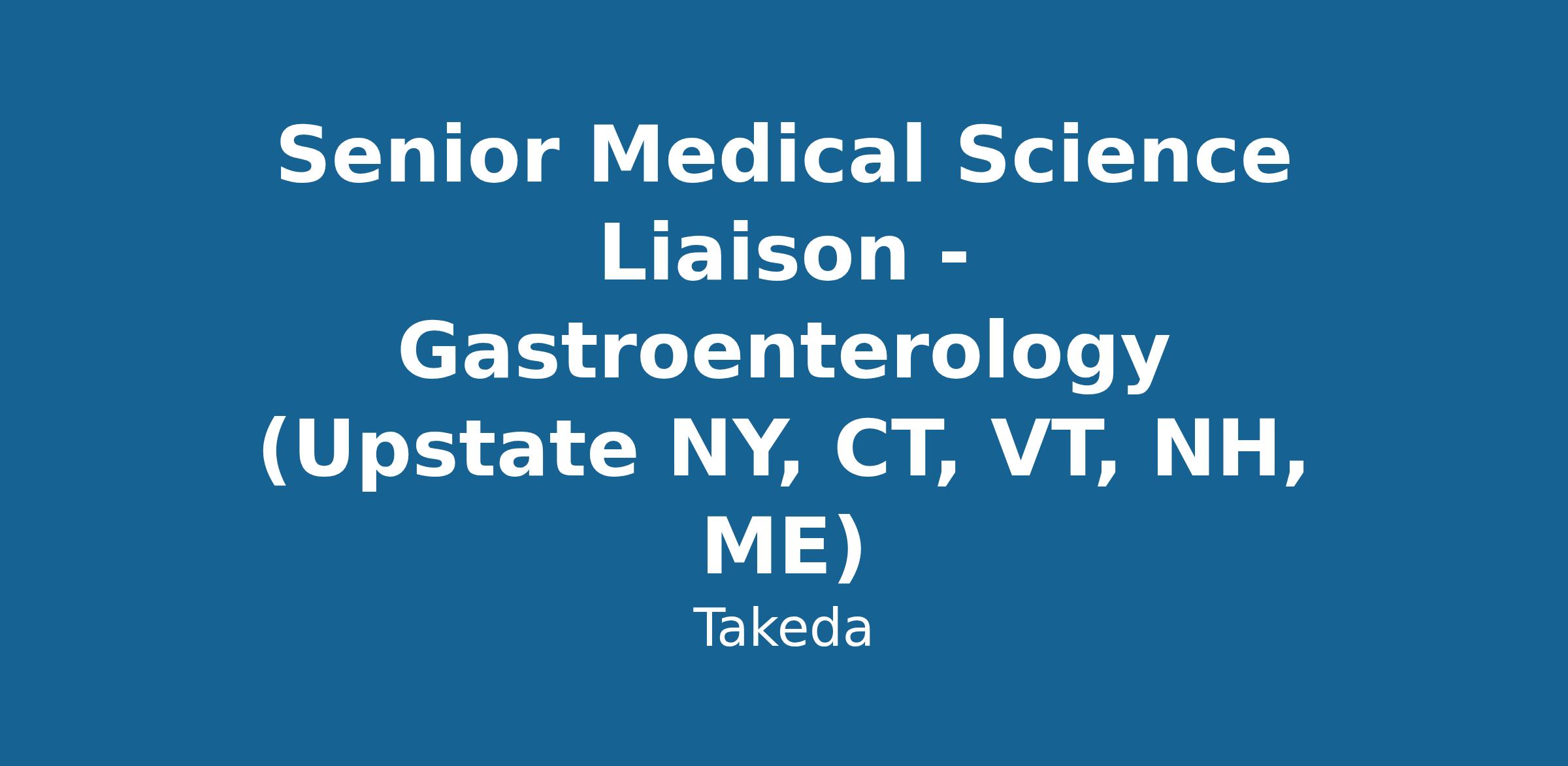 The Senior Medical Science Liaison is a remote, field-based, external customer-facing member of the US therapeutic area medical unit team, responsible for analyzing, interpreting and disseminating scientific data, acquiring and translating customer insights, fostering external expert networks, and compliantly connecting customers to Takeda in order to advance medical strategy and improve patient outcomes. As part of the US Medical team, you will report to the Director, Field Medical. The territory includes Upstate NY, CT, VT, NH, ME (must reside in territory).