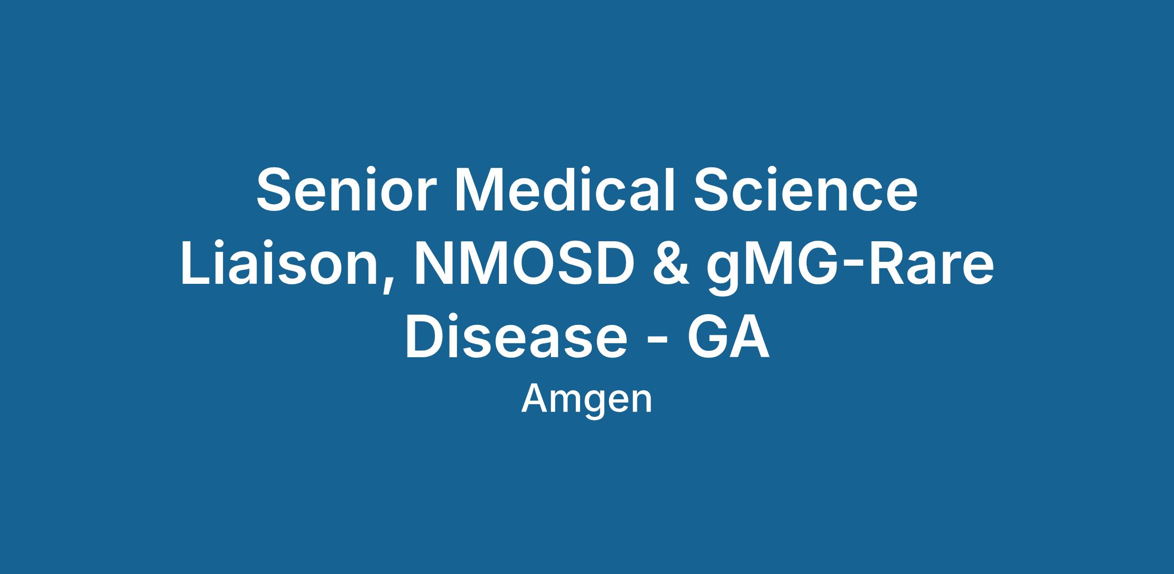 Senior Medical Science Liaison, NMOSD & gMG-Rare Disease - GA