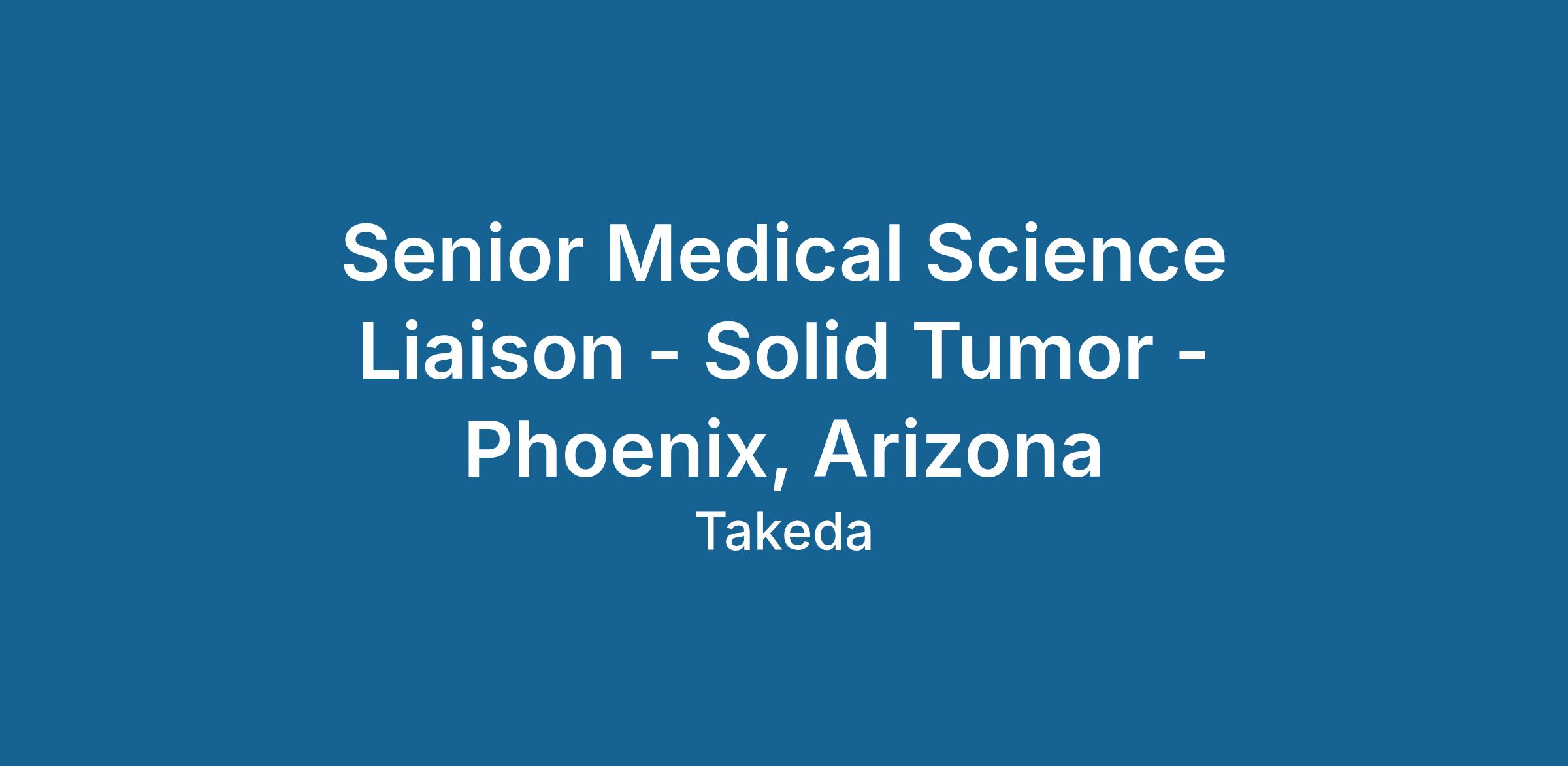 The Senior Medical Science Liaison is an integral member of the medical affairs team. In this field-based role, you will contribute to Takeda's mission by supporting the development and life-cycle management of Takeda Oncology medicines. The key objective of the MSL role is to engage scientifically with key opinion leaders in their assigned geography via accurate, scientific, and non-promotional information exchange. As part of the Oncology Field Medical team, you will report to the Medical Science Liaison Director and work with internal and external partners. This territory will be responsible for covering Arizona and New Mexico. The preferred location for the successful candidate to reside would be the Phoenix metro area.