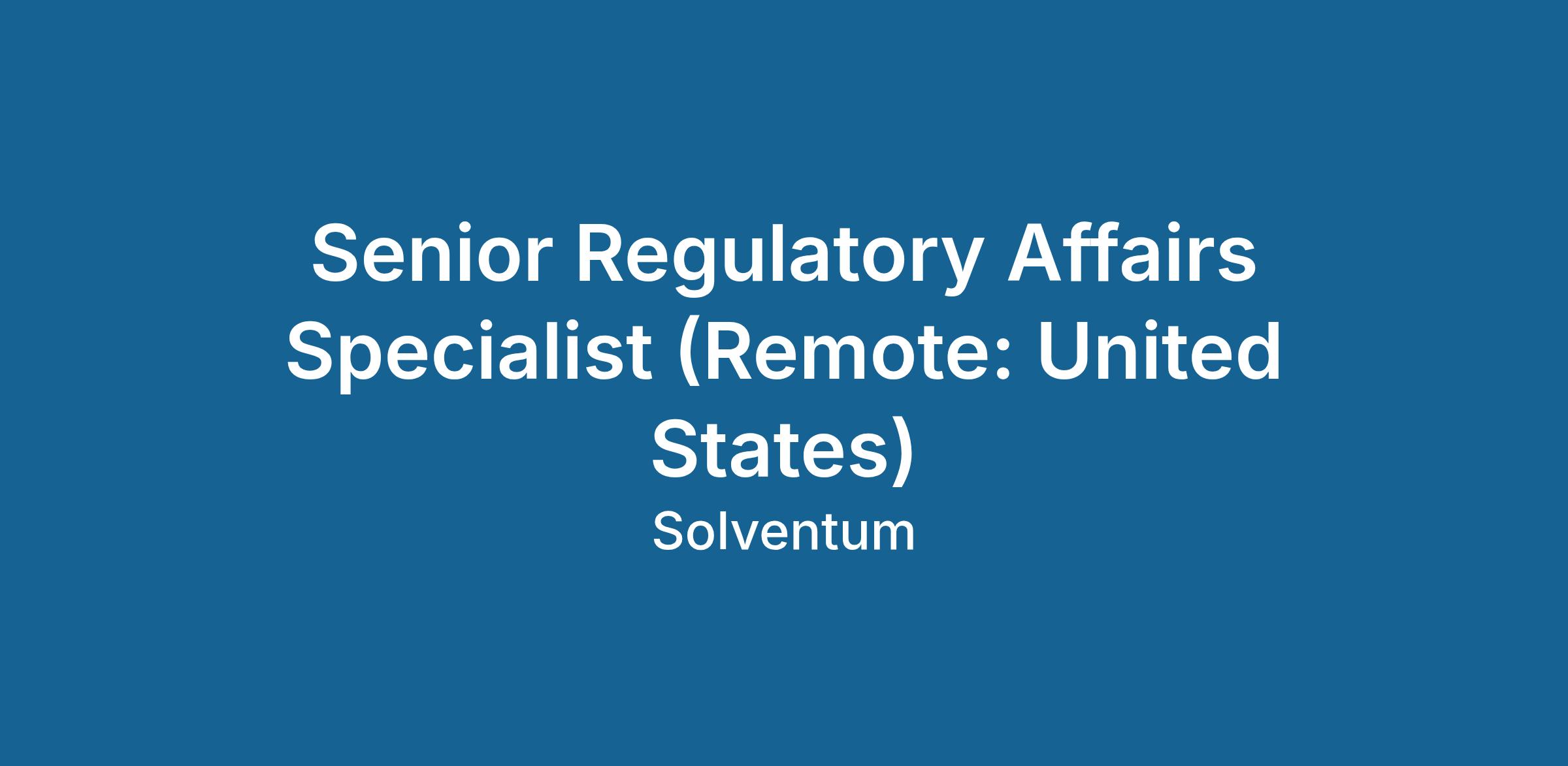 In this Senior Regulatory Affairs Specialist position, you will have the opportunity to act as the lead Regulatory Affairs associate on an enterprise-wide strategic initiative to optimize the business’s supply chain. The role will have a significant impact on the global strategy to make Solventum a stand-alone world class healthcare company.
