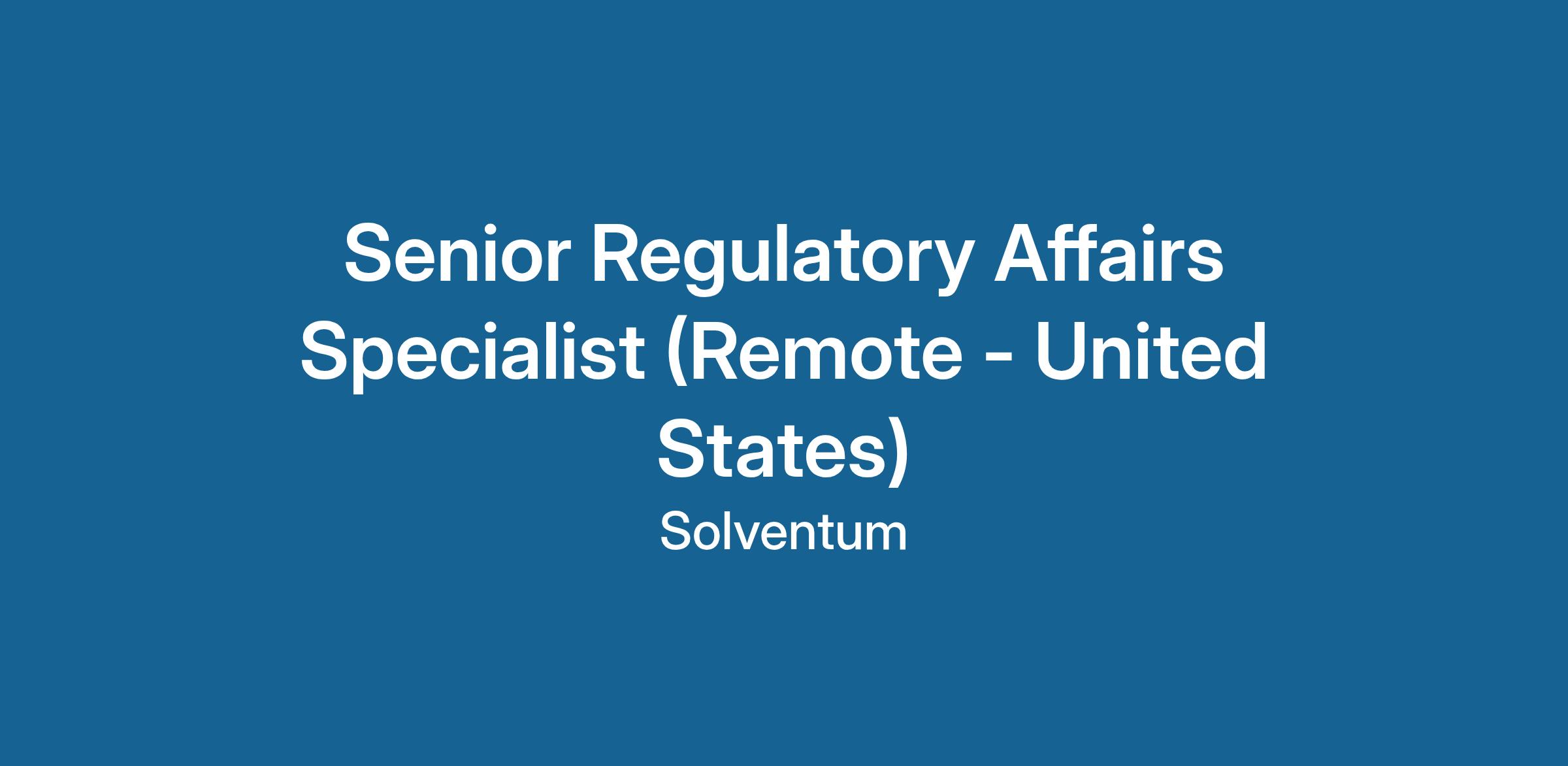 Senior Regulatory Affairs Specialist