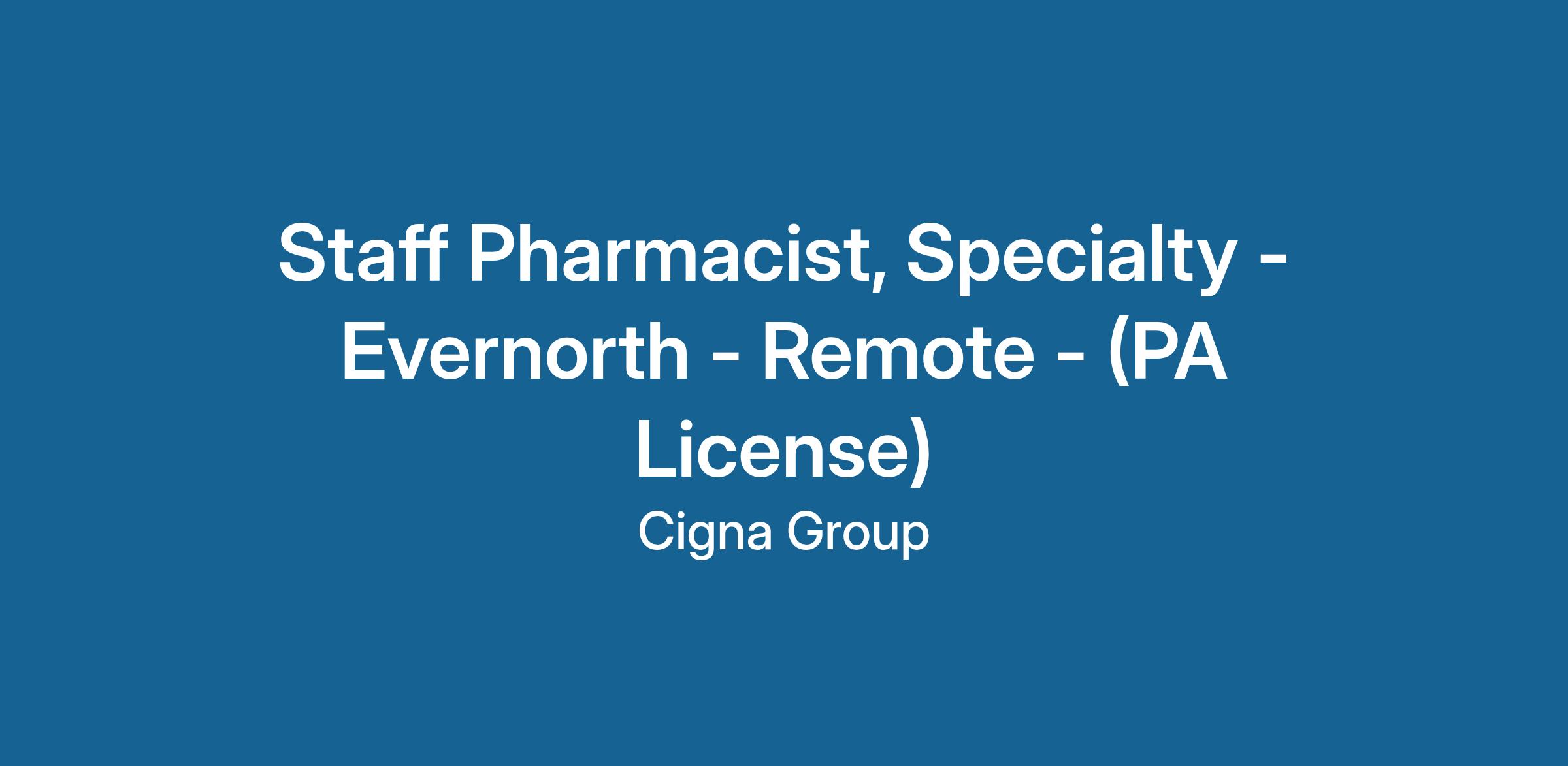 - B.S. degree in Pharmacy or Doctor of Pharmacy (Pharm D.) required. 2+ year's previous experience in specialty pharmacy services is preferred.