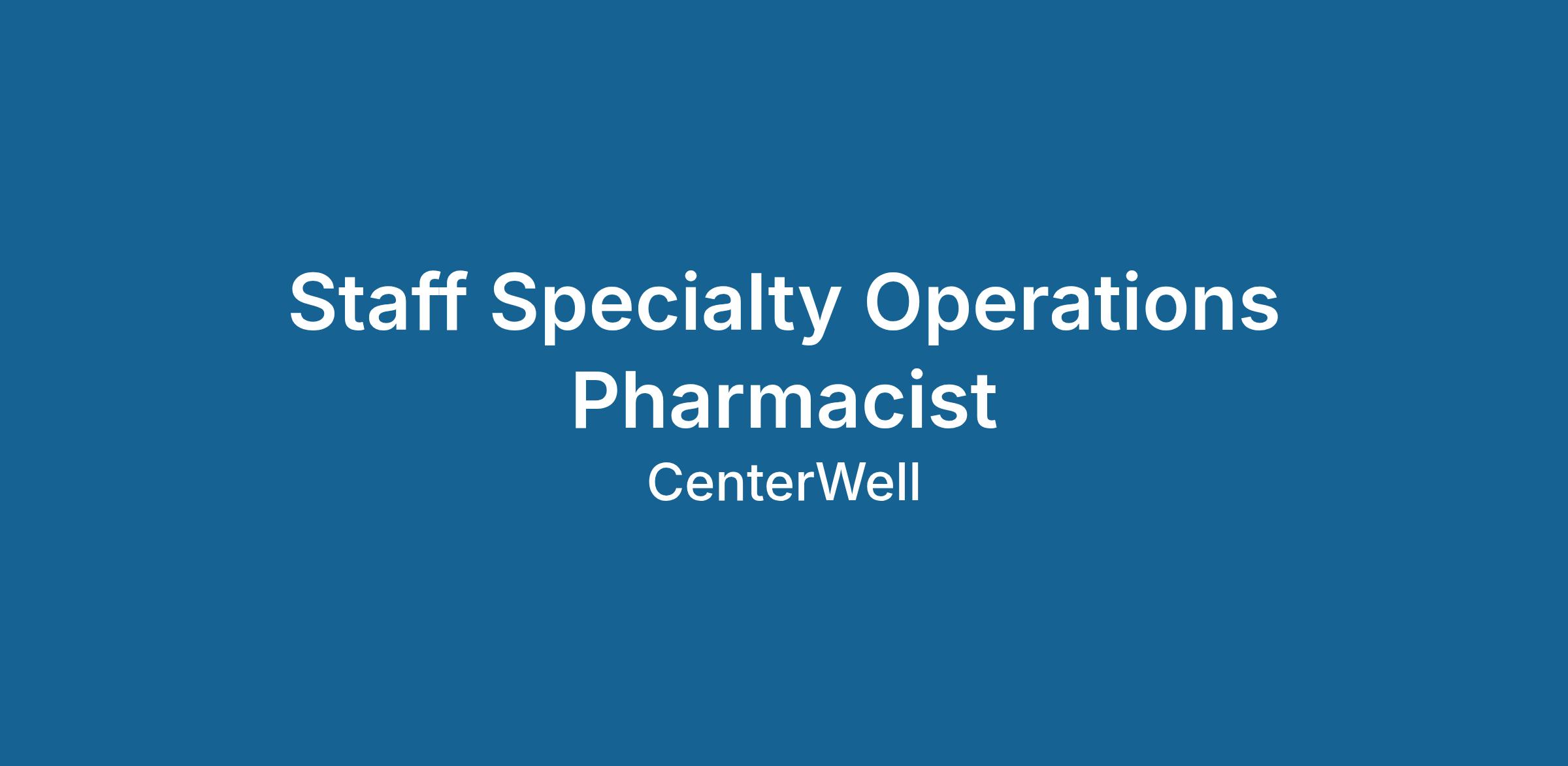 The Staff Specialty Operations Pharmacist applies clinical and operational knowledge to ensure effective and compliant processing specialty medication prescription orders to be mailed to patients' homes and/or provider offices from CenterWell Specialty Pharmacy. This position interacts directly with providers, patients and teammates to solve clinical and/or escalated issues including drug interactions, therapy regimens and medication stability. Work assignments vary and frequently require interpretation and independent determination of the appropriate courses of action while following established guidelines and department procedures. The Staff Specialty Operations Pharmacist makes decisions with minimal direction, occasionally in ambiguous situations and receives guidance where needed.