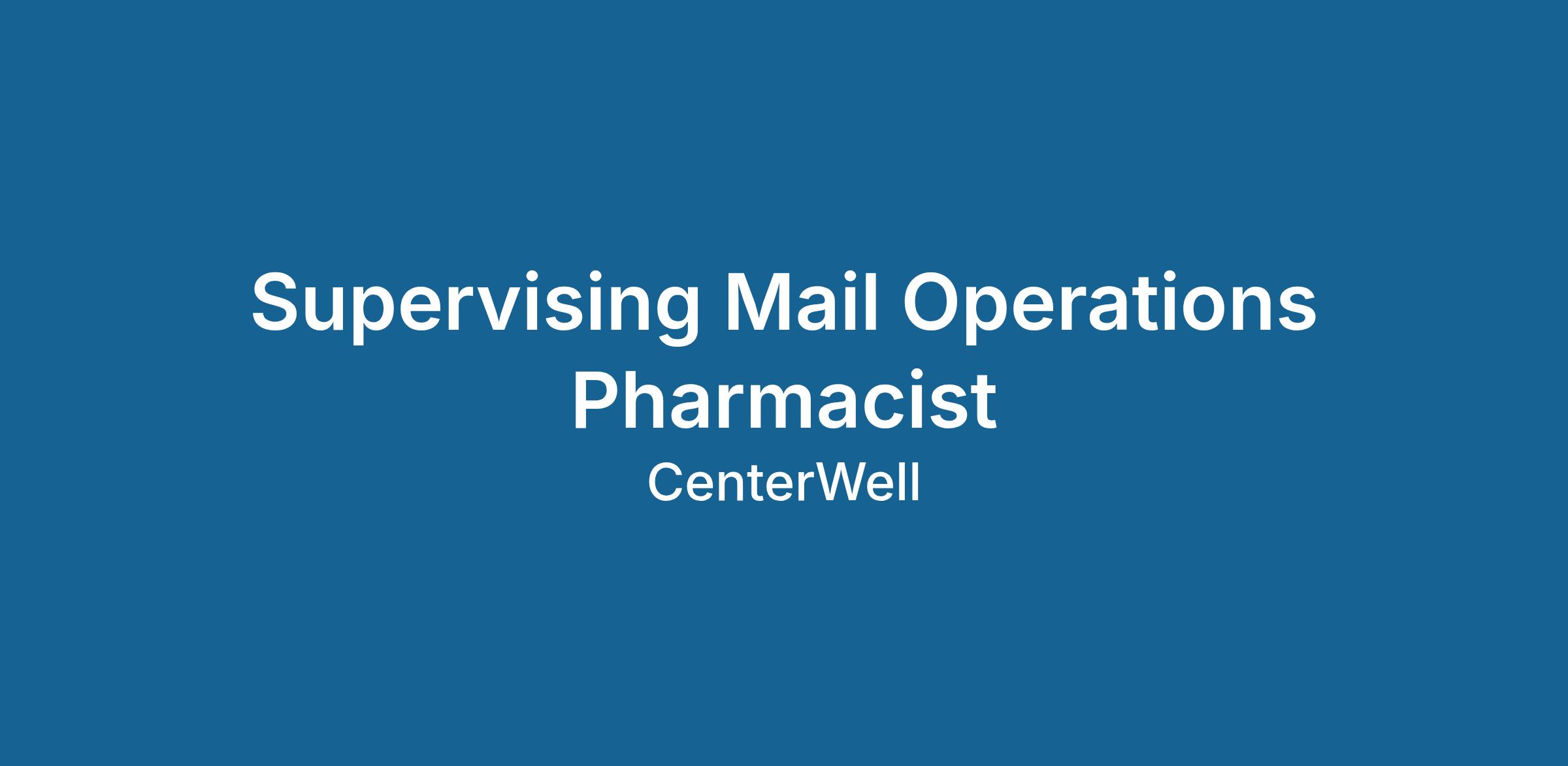 The Supervising Mail Operations Pharmacist ensures adherence to quality assurance standards, accurate tracking techniques and a review process before shipping medications to patients. Decisions are typically related to schedule, plans and daily operations. Perform escalated or more complex work of a similar nature and supervise a group of typically support and technical associates; coordinates and provide daily oversight to associates. Ensure consistency in execution across team. Hold team members accountable for following established policies.
