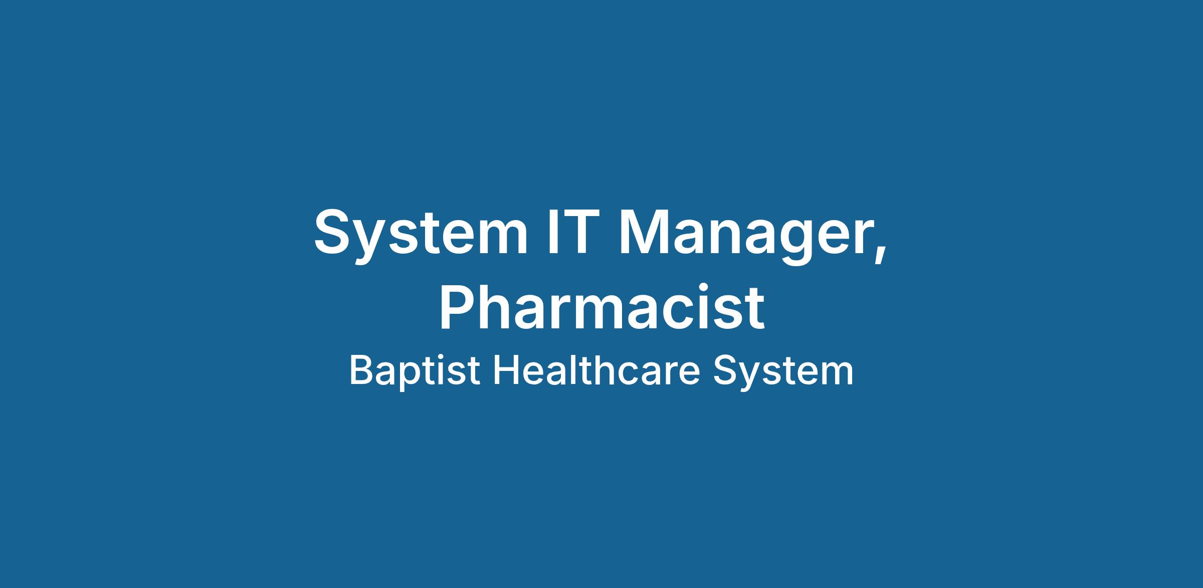 Baptist Health is looking for a System IT Manager, Pharmacist to join our team! This is a remote position that requires residency in KY or IN.